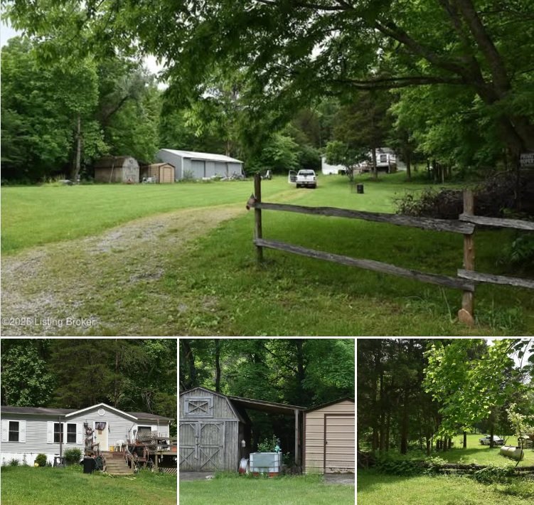 This 31.77-acre property in Columbia, Kentucky offers a peaceful setting just 10 miles from town. The 3-bedroom, 1-bathroom home, built in 1999, spans 1,120 square feet and sits amid mostly wooded acreage.