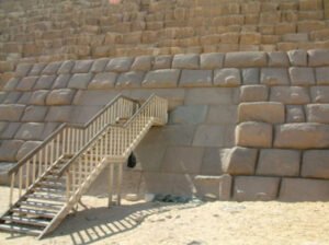 Undoubtedly, all of this frenetic activity would have scratched and pitted the entrance to the pyramid over the millennia in a very obvious fashion. Yet, it is generally accepted that the casing blocks must have been intact during the rule of Ma’mun, as the casing blocks appear to have been used by Sultan Hasan for the construction of his mosque in 1356.